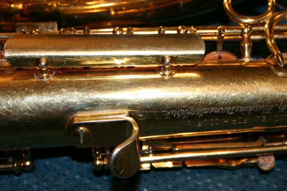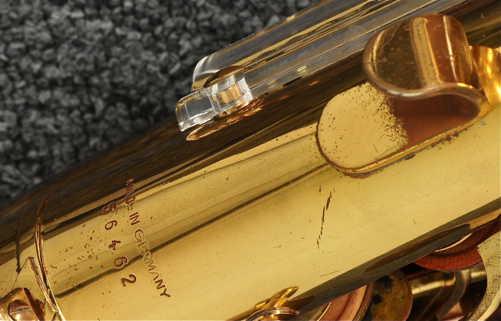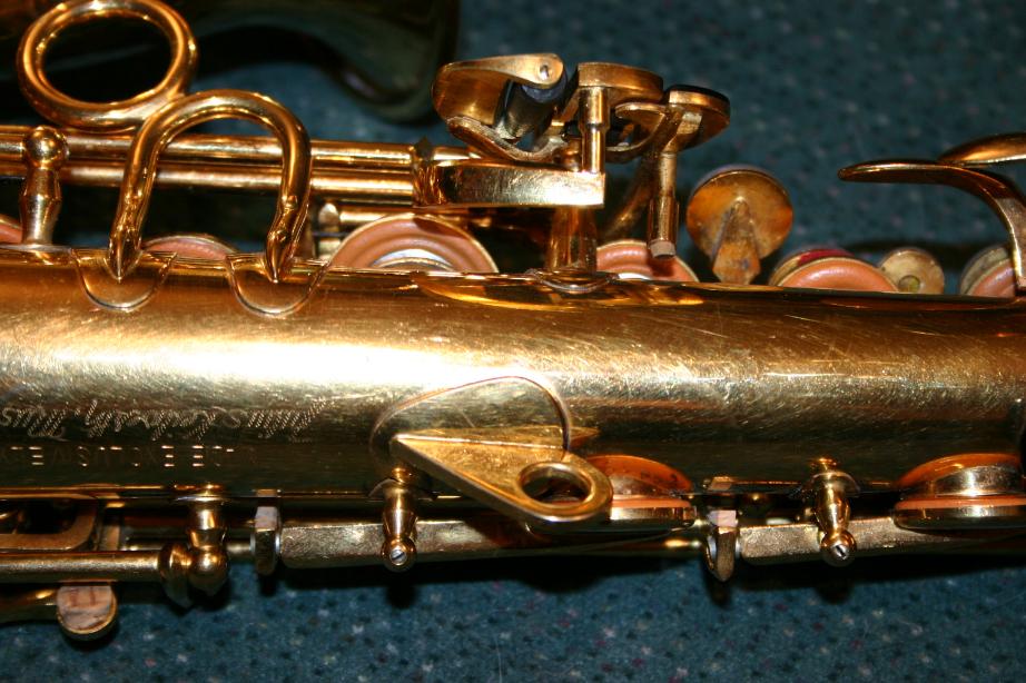 – Early saxes had a removeable metal thumbrest. Late model sopranos and altos had plastic thumbrests. The plastic thumbrest had a 2 point connection. This prevented breaking which apparently was a problem on Selmer horns at that time.